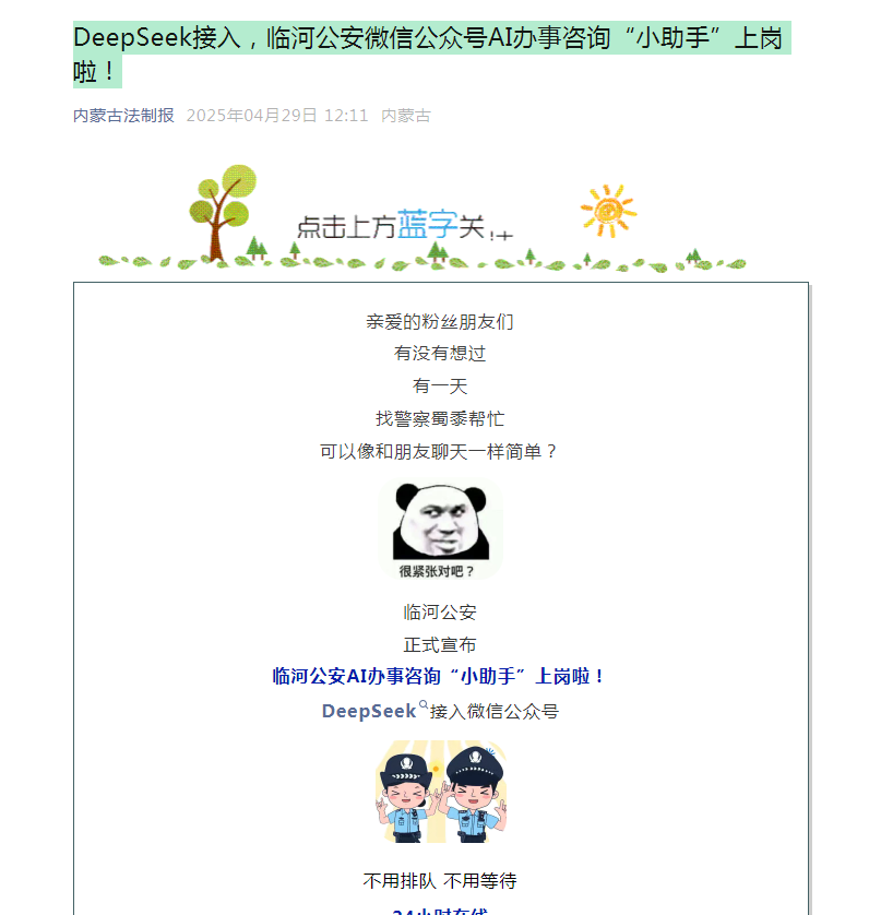 临河公安的AI办事咨询“小助手”