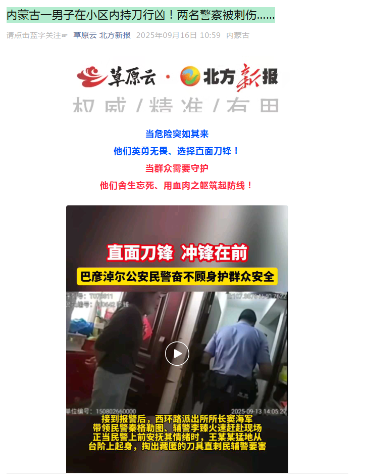 迎刃而上护民安!巴彦淖尔公安民辅警面对凶险,没有丝毫退缩,用血肉之躯筑起护卫群众的安全屏障,用实际行动诠释“人民公安为人民”的初心使命,在危急时刻彰显了人民警察的责任与担当。