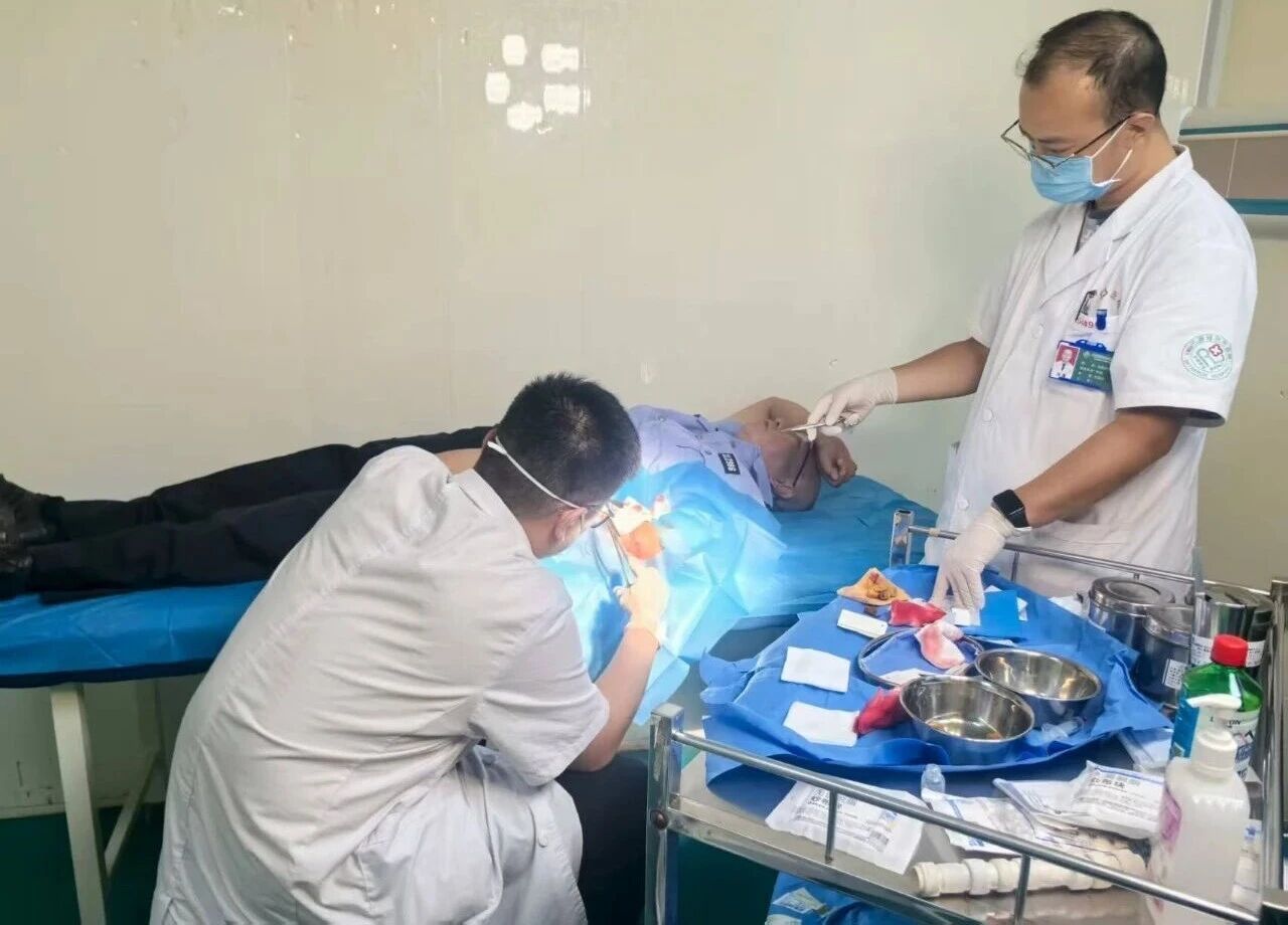 “如果再刺偏1厘米,伤到动脉,将会有生命危险。”医生在查看治疗窦海军受伤情况时说。窦海军左腋下8厘米皮肤裂伤,缝合6针,前胸也留下三处划伤;秦格勒图左侧前臂10厘米皮肤裂伤,深达肌层,缝合30余针。