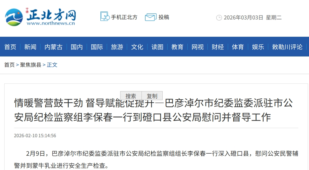 2月9日,巴彦淖尔市纪委监委派驻市公安局纪检监察组组长李保春一行深入磴口县,慰问公安民警辅警并到蒙牛乳业进行安全生产检查。