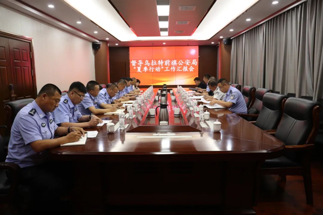 当日下午,达日汉夫副市长在乌拉特前旗公安局组织召开乌拉特前旗公安局夏季治安打击整治行动汇报会。刘煜同志代表乌拉特前旗公安局党委就乌拉特前旗公安局夏季治安打击整治行动开展情况进行了汇报。督导组一行对乌拉特前旗公安局夏季治安打击整治行动开展情况提出了指导性意见。达日汉夫副市长强调,要进一步提高政治站位,切实增强责任感、使命感、紧迫感,准确把握形势,突出重点难点,守住底线,争创亮点;要因地制宜,深入分析研判夏季社会治安规律和违法犯罪特点,针对性地制定打击整治及工作措施,做到有的放矢、精准整治、重点打击、深化服务;要结合实际,有计划、有步骤地抓好每个阶段每个细节的工作任务落实,紧盯各个时间点、时间段,抓好每个时期的工作任务,组织各警种开展好行动,全面保障社会大局平安稳定。