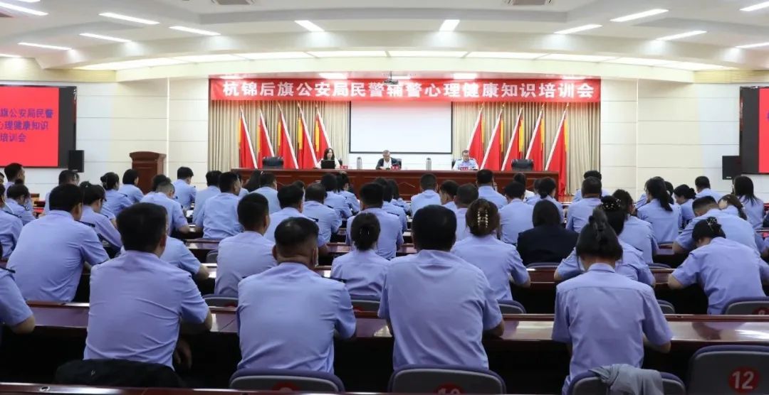 为加强社会心理服务体系建设,缓解重点行业工作人员的压力,预防不良心理行为问题,树立“身心同健康”理念,同时进一步强化暖警爱警工作,切实加强民辅警的心理健康保护,更好地履行公安职责,近日,由旗卫生健康委员组织旗疾病预防控制中心具体主办的杭锦后旗2023年社会心理健康知识培训会第一场培训在旗会展中心四楼河套厅为杭锦后旗公安局全体民辅警做专题培训。本次培训特别邀请北京中医医院内蒙古医院神志病三科心理治疗师、临床心理治疗师、国家二级心理咨询师,内蒙古医师协会心理卫生专业第一届委员会委员周楠老师进行现场培训。旗公安局党委委员、政工办主任陈伍龙主持会议并讲话,旗卫生健康委员会副主任周勇,旗疾病控制中心副主任冯勇,旗卫健委疾控应急股长闻花、疾控中心慢性病科股长王如博及全体民辅警参加培训会。