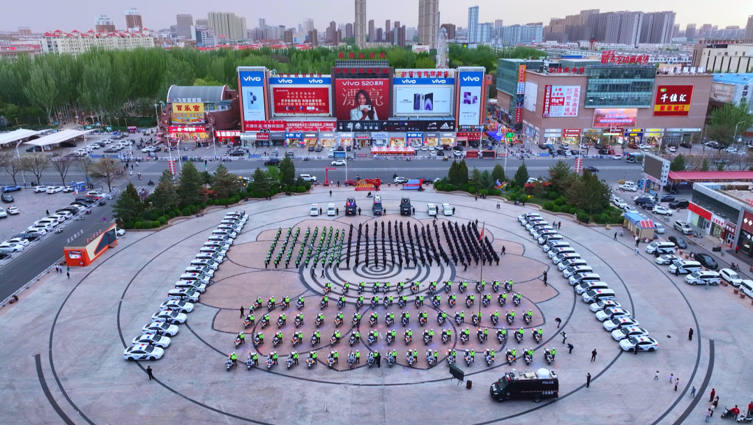 市区两级公安局党委班子成员、局属各部门单位负责人以及市区两级公安机关540余名民辅警、“河套铁骑”巡逻大队、无人机巡航大队、治安行动大队、40余辆巡逻警车和特种车辆组成方阵参加仪式。